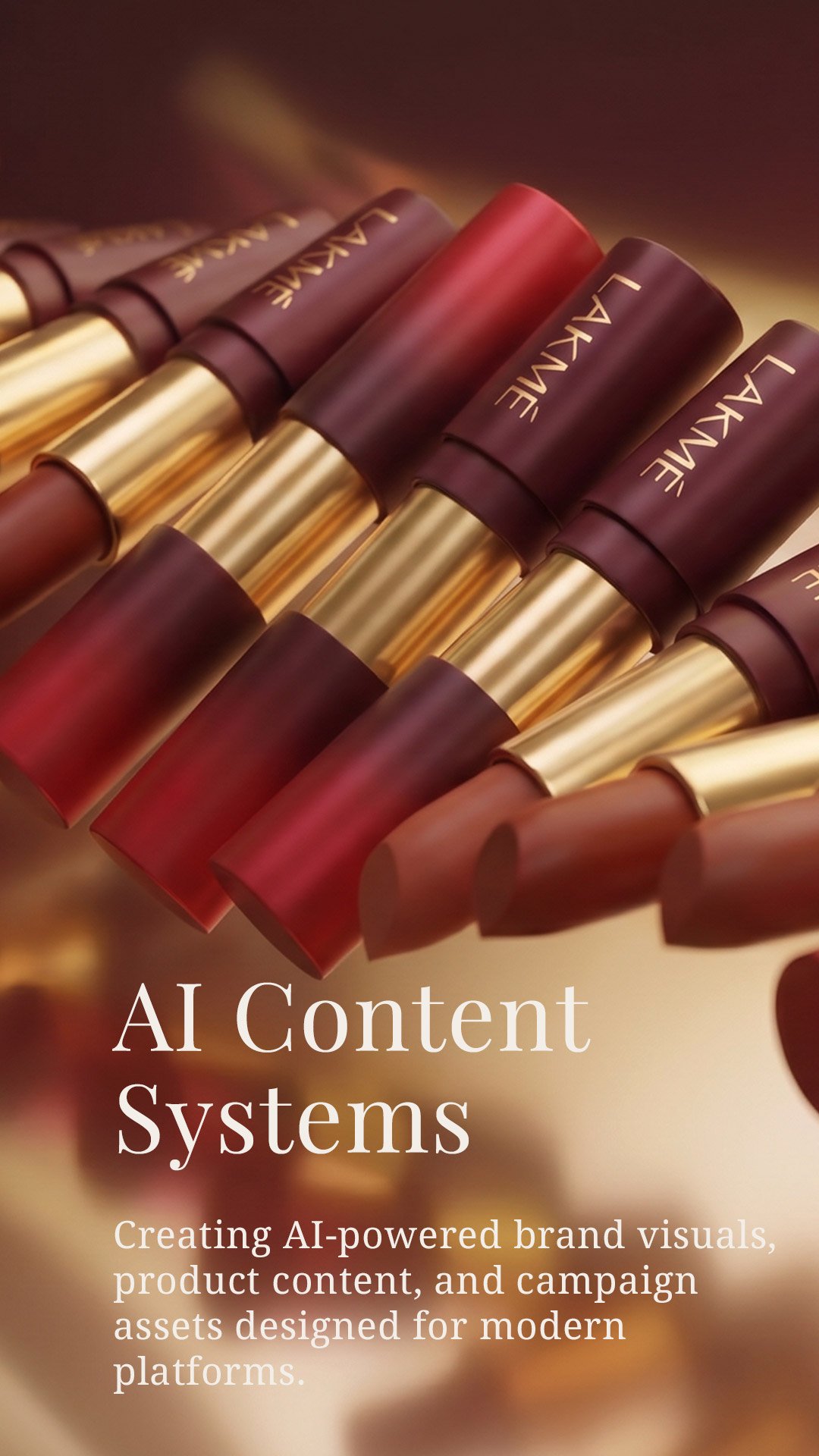 We craft premium AI-generated still visuals for advertising and branding campaigns. Each image is carefully art-directed, generated, and refined through professional design and retouching, resulting in visuals that feel editorial, polished, and campaign-ready. This is AI used as a creative tool, not a shortcut.